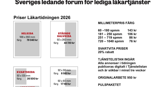 Läkartidningen är Sveriges ledande forum för lediga läkartjänster. Här når ni medlemmarna i Sveriges läkarförbund både via tidningen och online!
